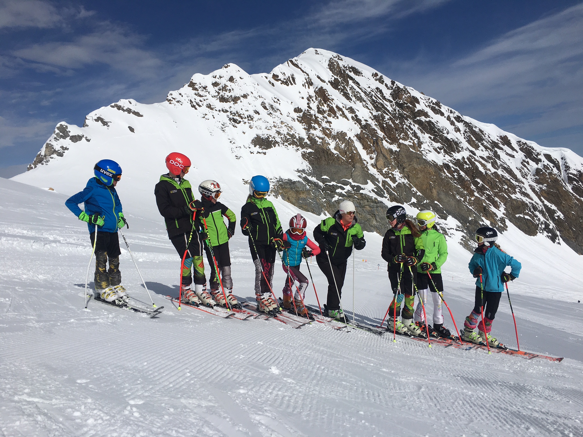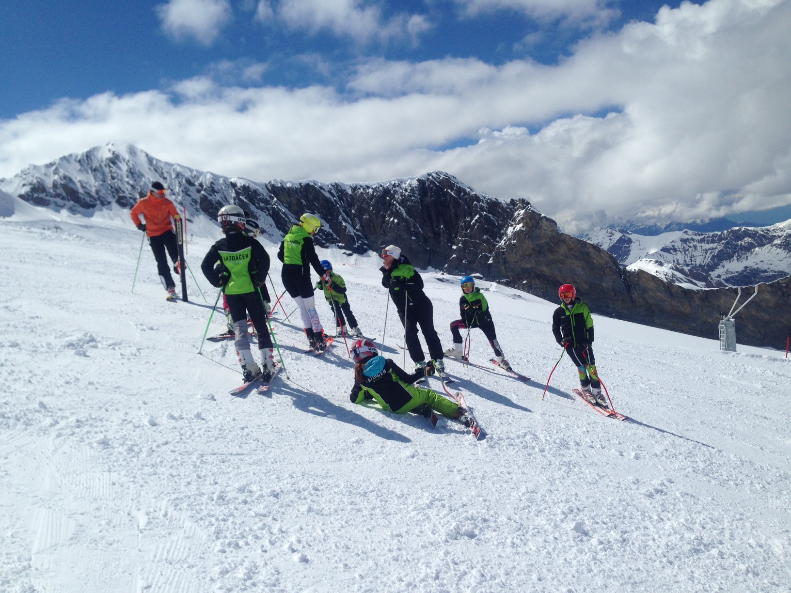 Během dalšího prodlouženého víkendu odjela skupina žáků na čtyřdenní kemp (4.5.-8.5.) na Hintertux. Kvalitní sněhové podmínky umožnily i přes střídavé počasí absolvovat spoustu volného ježdění, nápravu chyb v technice jízdy, nácvik slalomového oblouku v krátkých tyčích a díky čerstvému prašanu si děti užily i jízdu v hlubokáči mimo sjezdovky.