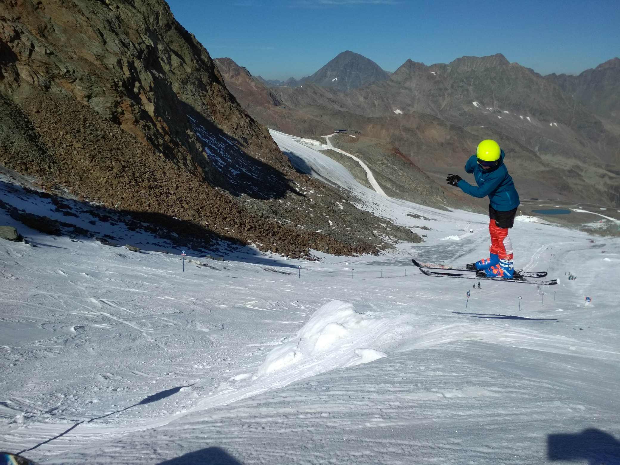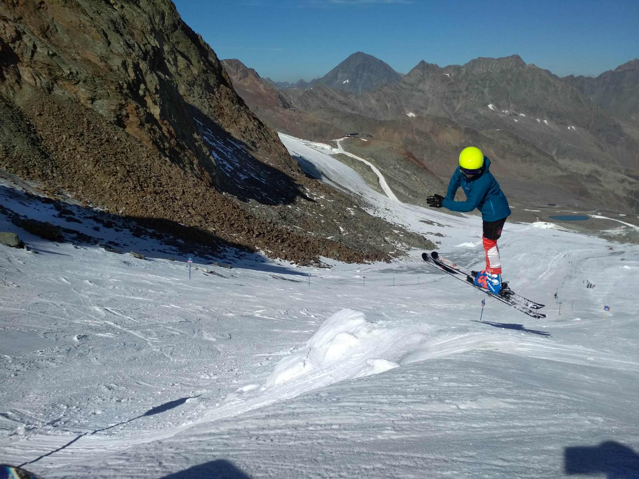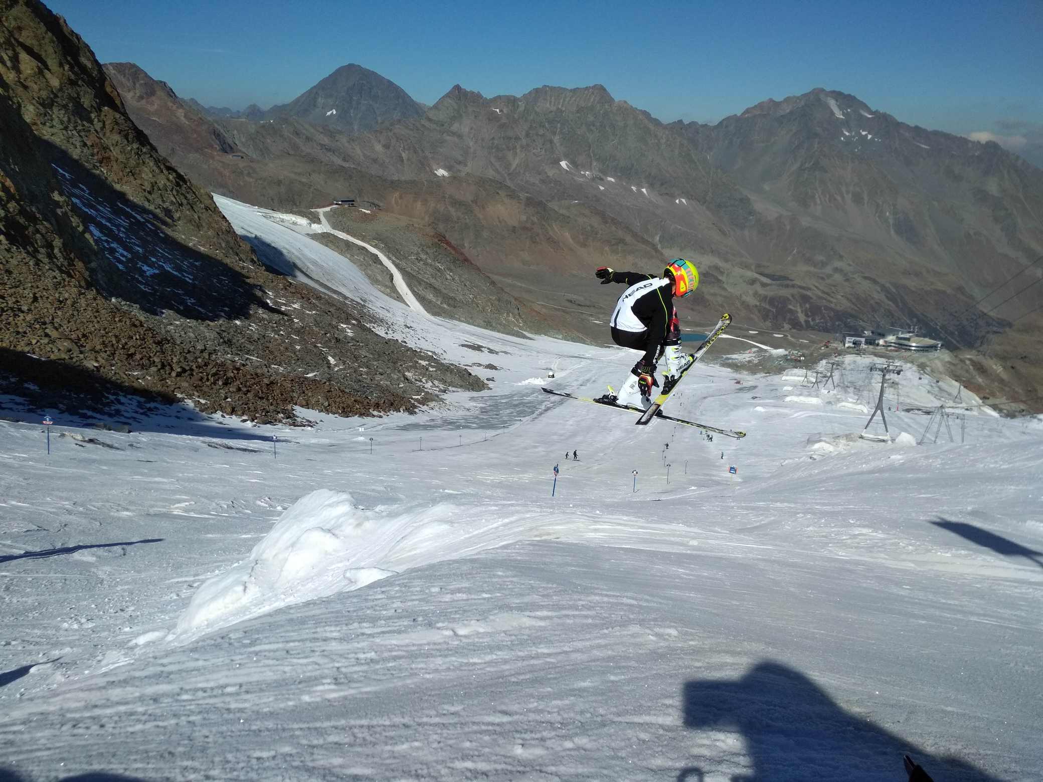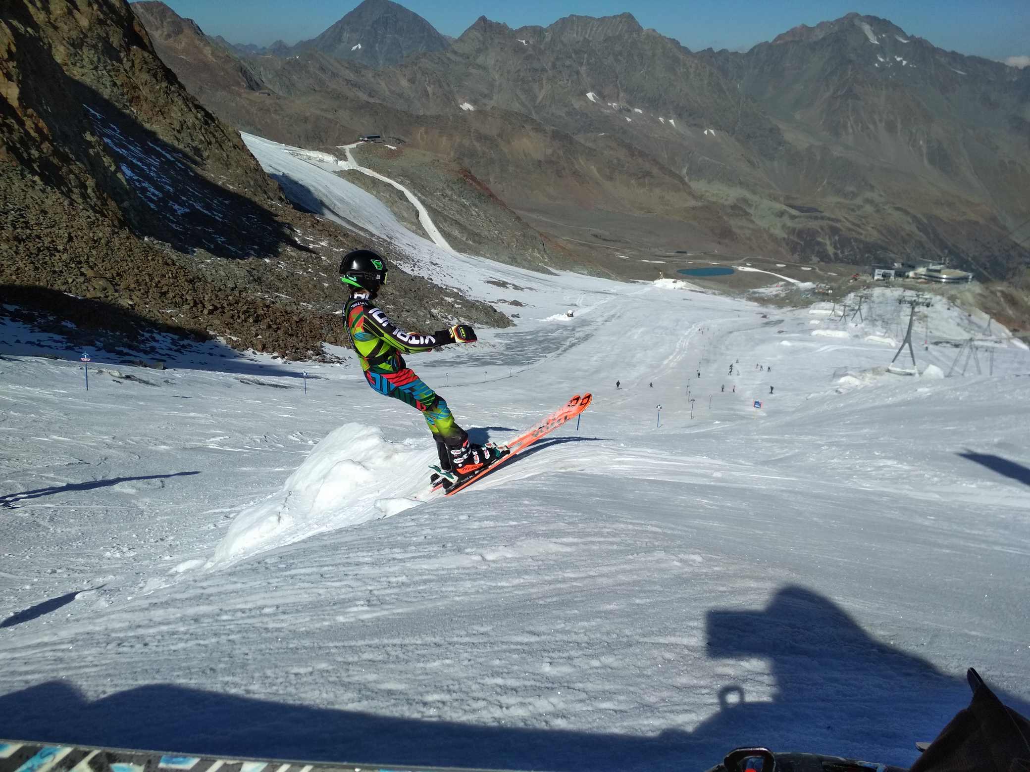 Koncem září počasí nedovolilo spustit Stubaiský ledovec, takže první lyžování tohoto podzimu proběhlo až nyní. Podmínky nebyly zdaleka ideální, ale na cvičení a rozlyžování se vždycky mezi plotnami a kameny kousek sněhu našel :-) Jak říkal jeden slavný vojevůdce - těžko na cvičišti, lehko na závodech. A ještě jedno pozitivum- díky kamenům a zničeným hranám lyží si všichni závodníci opět pěkně procvičili přípravu lyží.
