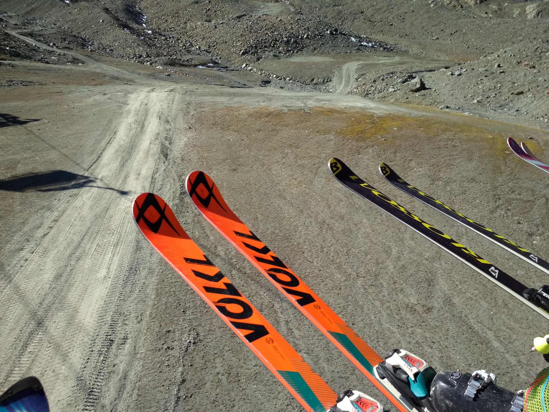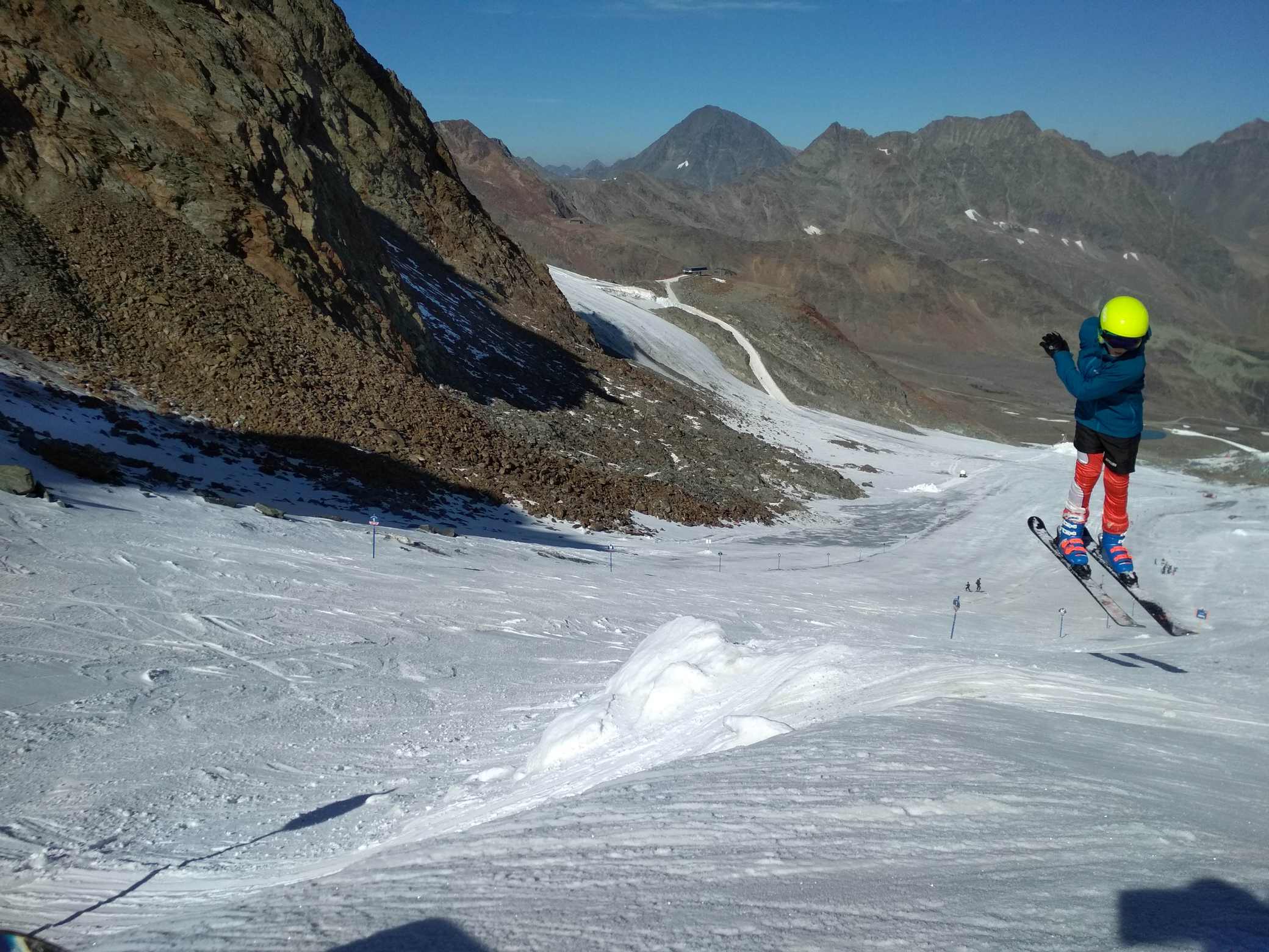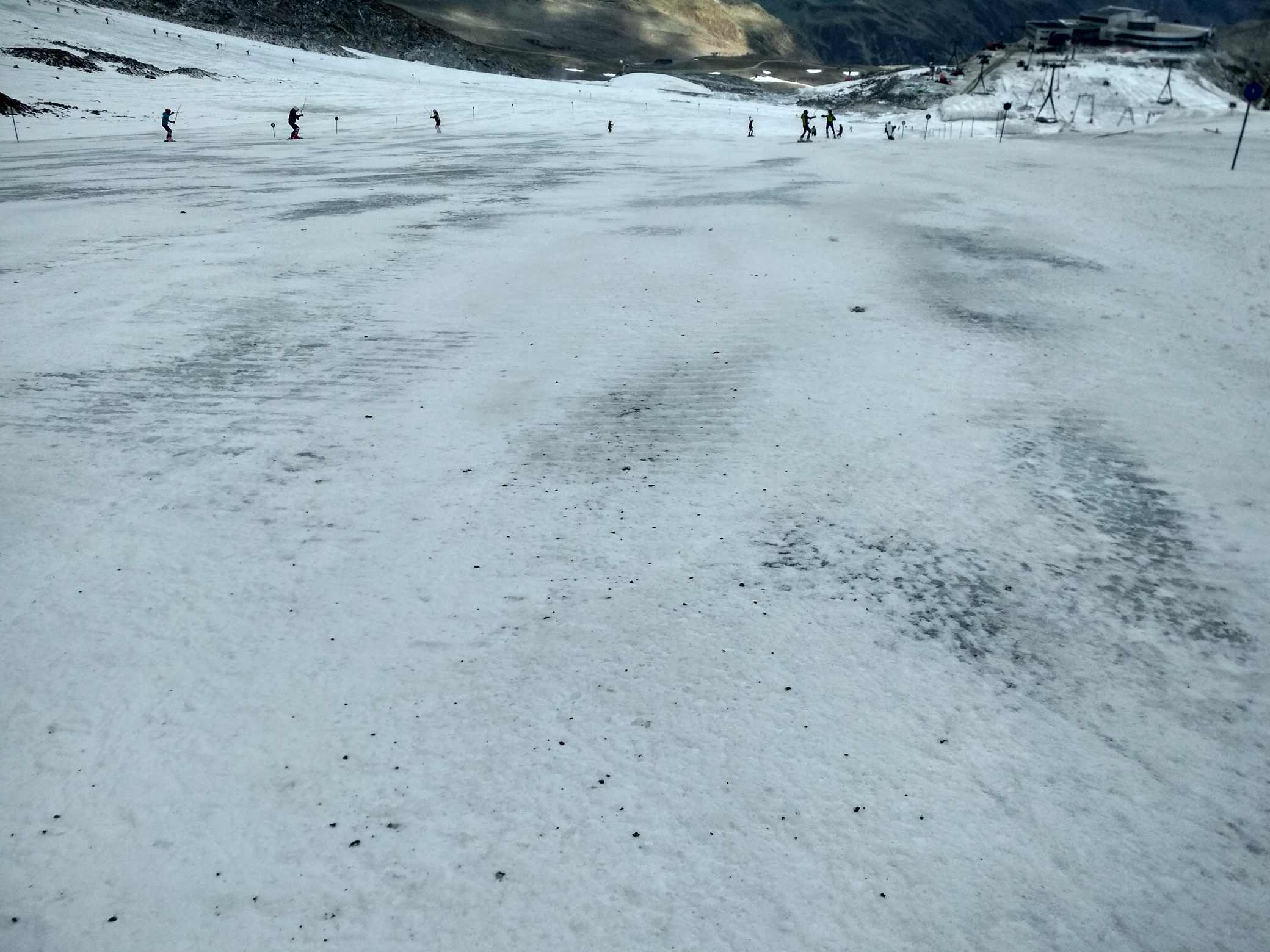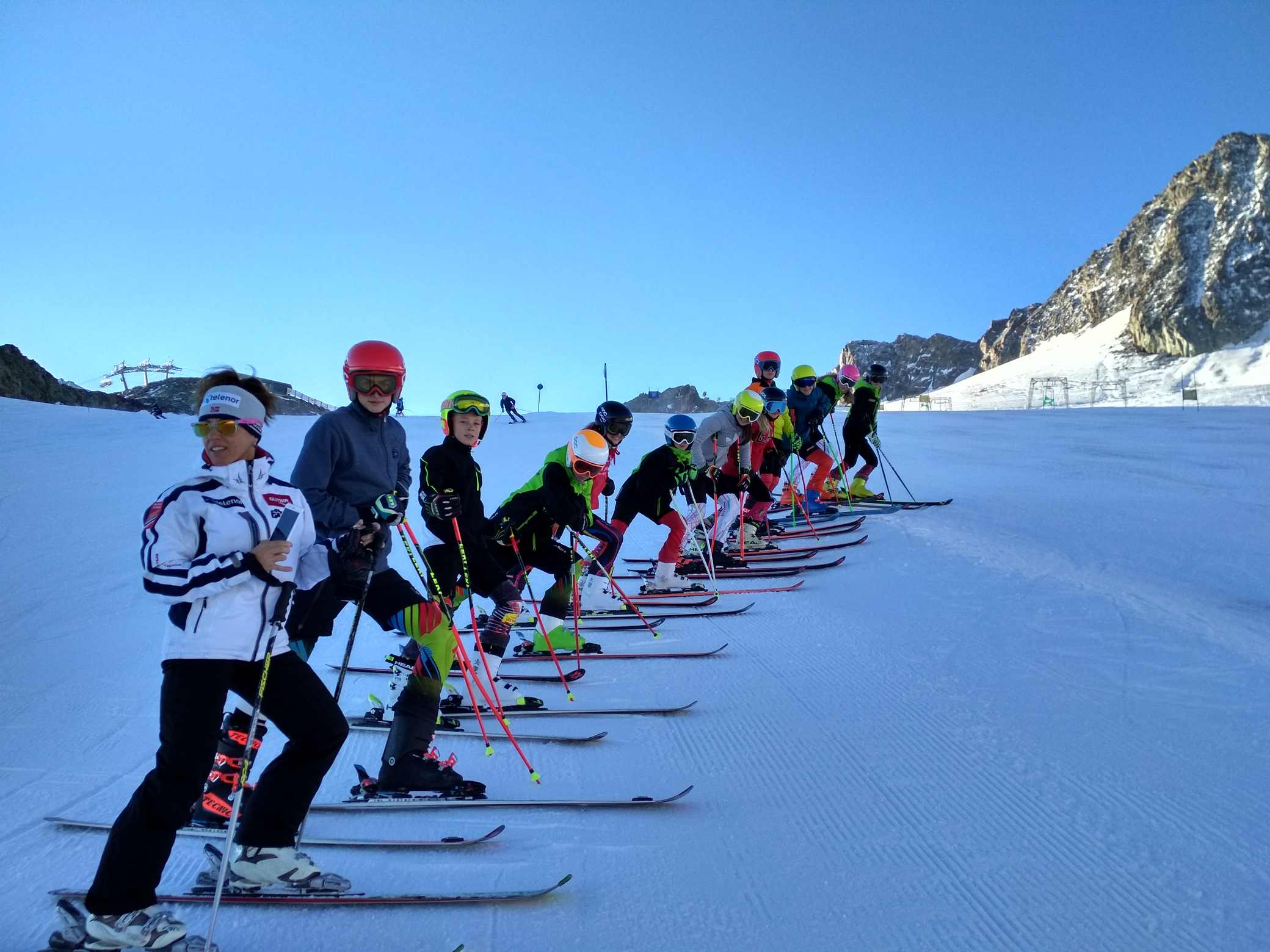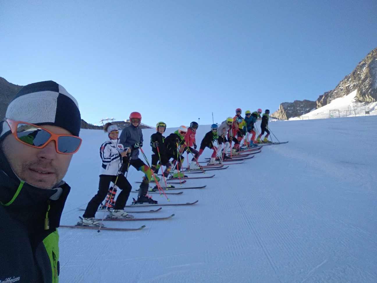 Koncem září počasí nedovolilo spustit Stubaiský ledovec, takže první lyžování tohoto podzimu proběhlo až nyní. Podmínky nebyly zdaleka ideální, ale na cvičení a rozlyžování se vždycky mezi plotnami a kameny kousek sněhu našel :-) Jak říkal jeden slavný vojevůdce - těžko na cvičišti, lehko na závodech. A ještě jedno pozitivum- díky kamenům a zničeným hranám lyží si všichni závodníci opět pěkně procvičili přípravu lyží.
