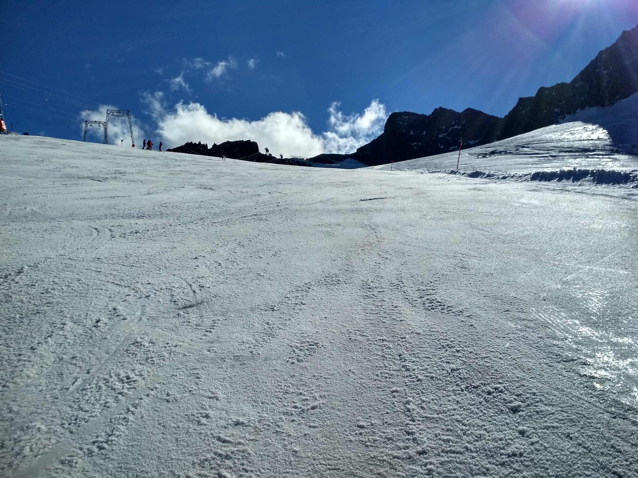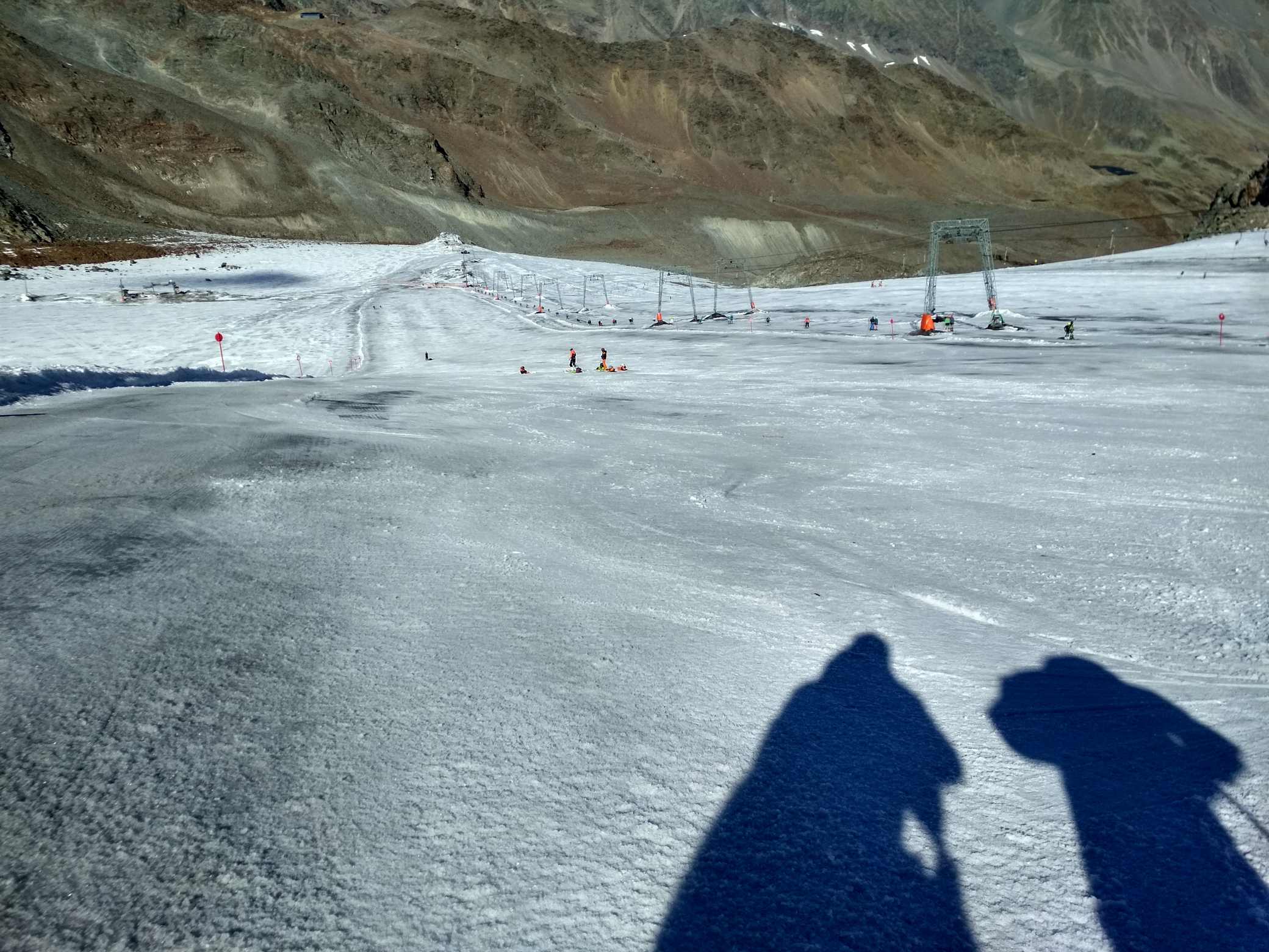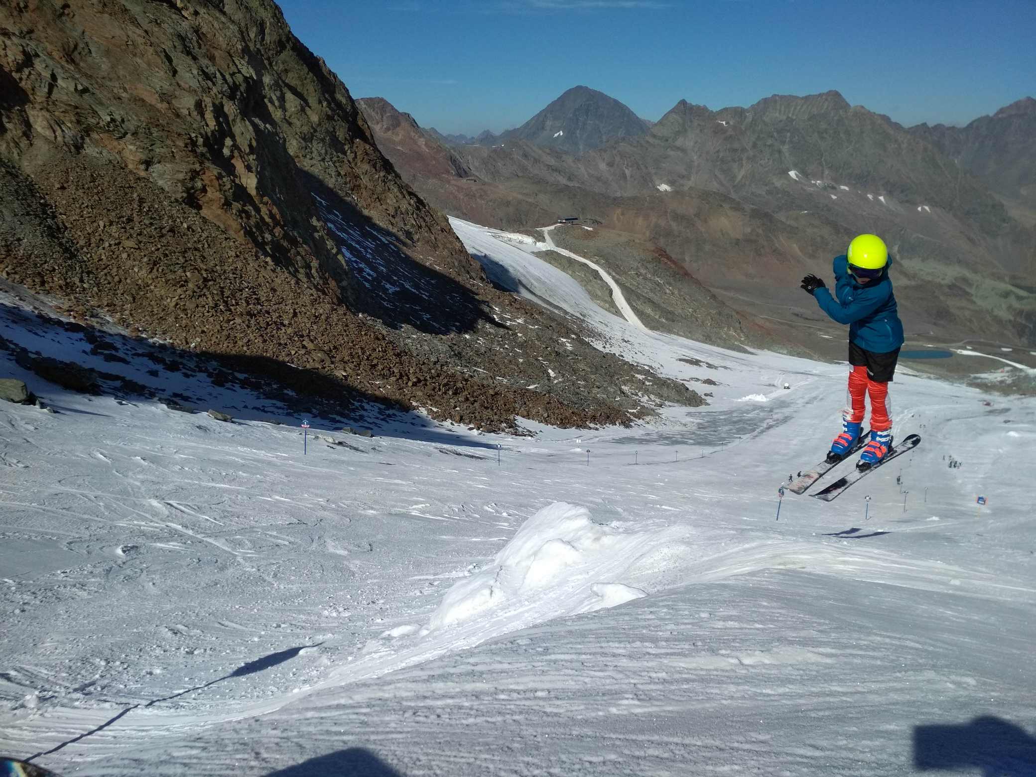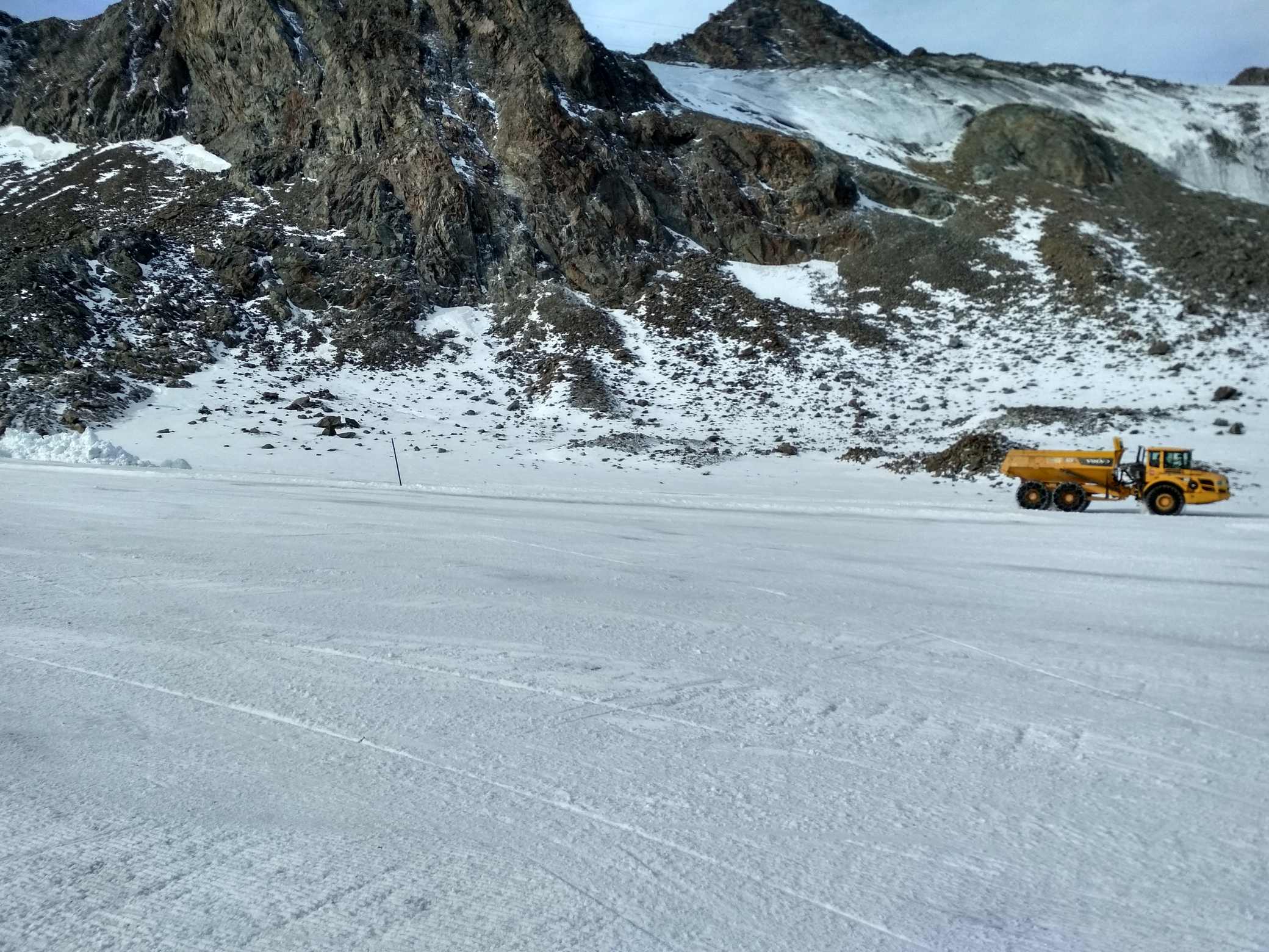 Koncem září počasí nedovolilo spustit Stubaiský ledovec, takže první lyžování tohoto podzimu proběhlo až nyní. Podmínky nebyly zdaleka ideální, ale na cvičení a rozlyžování se vždycky mezi plotnami a kameny kousek sněhu našel :-) Jak říkal jeden slavný vojevůdce - těžko na cvičišti, lehko na závodech. A ještě jedno pozitivum- díky kamenům a zničeným hranám lyží si všichni závodníci opět pěkně procvičili přípravu lyží.