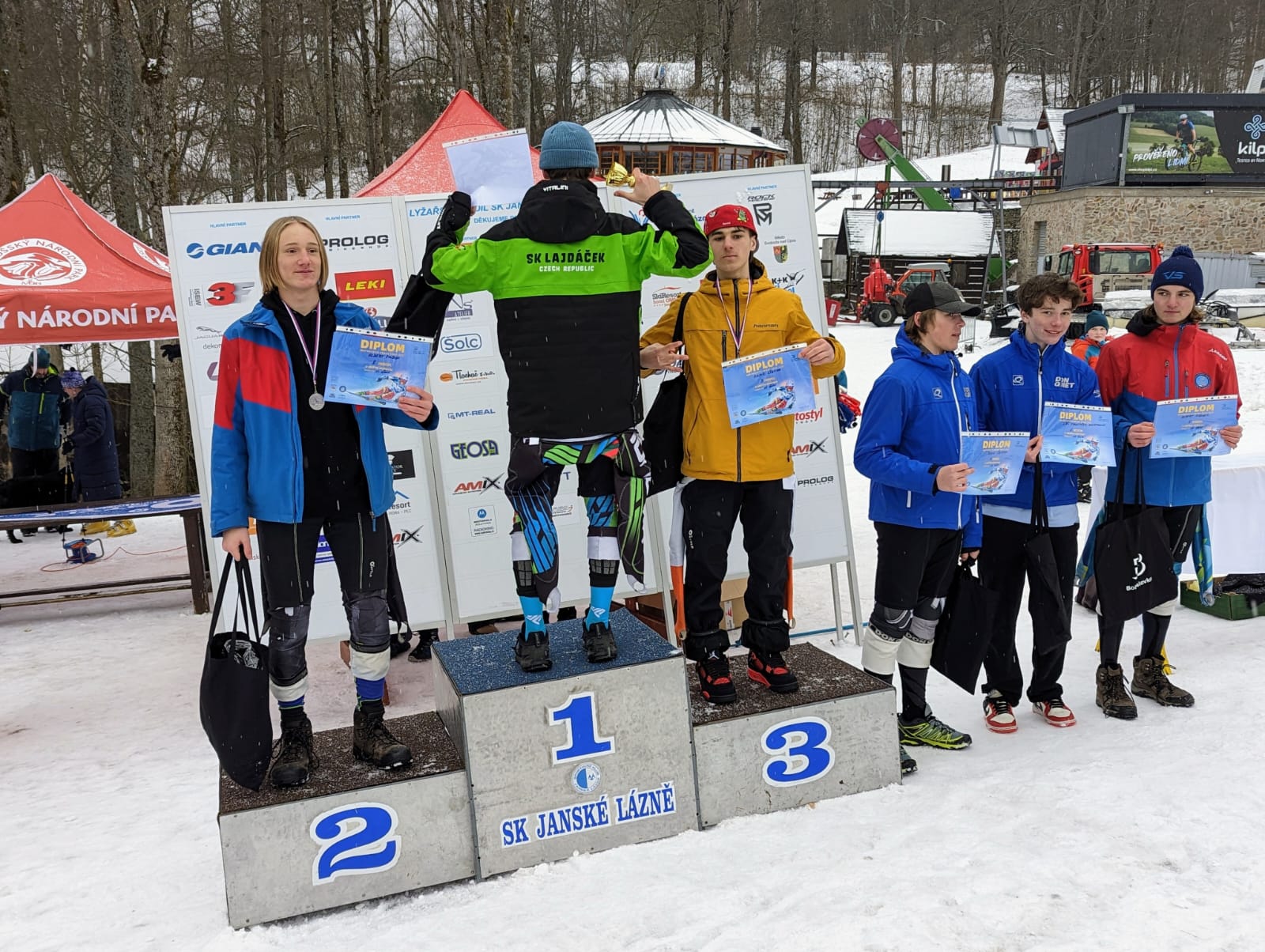 Jak už je zmíněno výše Mistry v obřím slalomu starších žáků se stali naši závodníci
